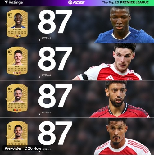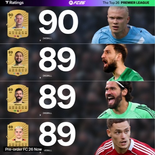 开云体育-FC26英超球员TOP26评分:萨拉赫91分领跑,罗德里范迪克哈兰德90分紧随