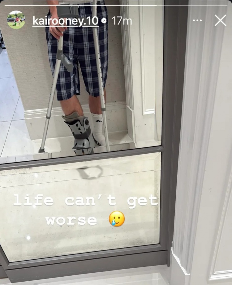 9月11日,曼联青训梯队传来令人关切的消息——球队传奇韦恩-鲁尼之子、年仅15岁的凯-鲁尼遭遇伤病困扰。他在个人社交账号上发布了一张拄着拐杖、身穿保护靴的照片,配文写道:“没有比这更糟的时刻了”,情绪显得十分低落。