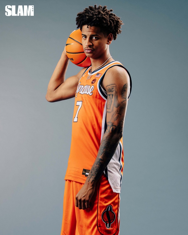 杂志配文宣告:"目标直指穹顶[1]。雪城男篮的未来希望基扬-安东尼正式亮相《SLAM》第258期封面。"
